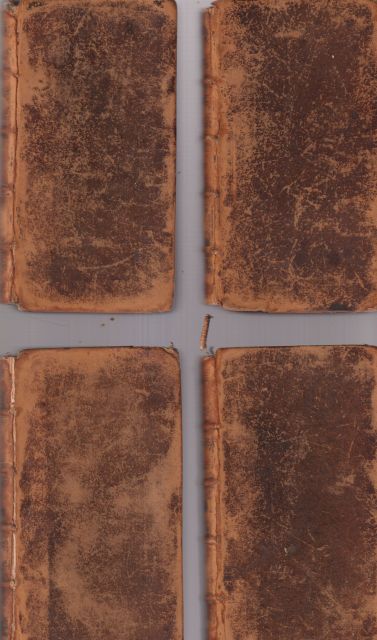 First edition, first printing thus. 4 small volumes (of 5 or 6?). Very good leather with some scuffing to the spine. Titles to the spine faded. Loose binding with front board of volume 3 detached.