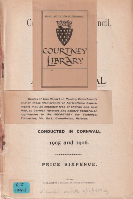 Report on Agricultural Experiments Conducted in Cornwall During the Seasons 1899 & 1900