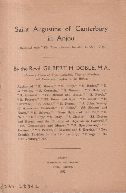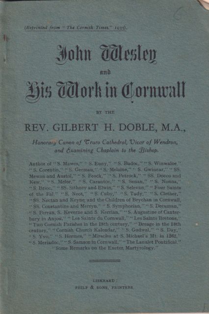 The Saints of Cornwall - Part One; Saints of the Land's End District, Part Two; Saints of the Lizard District, Part Three; Saints of the Fal, Part Four; Newquay, Padstow and Bodmin District, Part Five; Saints of Mid-Cornwall and Part Six: The Saints of N